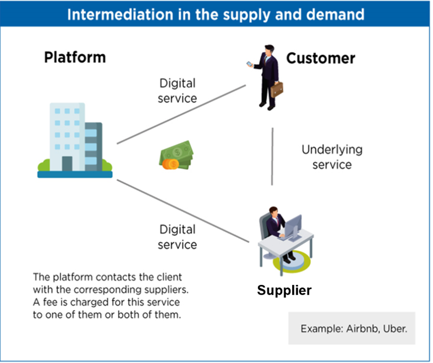 We deal with an intermediation service in the supply and demand when the business model of the digital service supplier facilitates the interaction (intermediation) between suppliers and clients of goods or services (underlying transaction). As a result, the supplier of this digital intermediation service will charge a fee as detailed in the following chart: