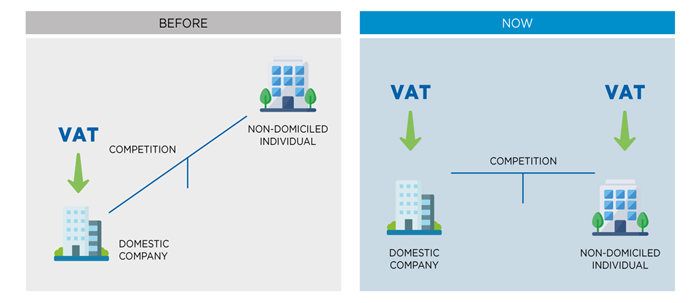 * Residual: when non-domiciled individuals do not comply with specific obligations, the persons responsible for declaring and making the payment of the VAT will be the payment facilitators (SFP) which will be implemented when the regulation is published.