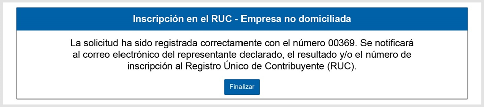 Una vez evaluada la solicitud de inscripción en el RUC del sujeto no domiciliado por personal de SUNAT, llegará un correo electrónico al representante legal con el resultado de la evaluación.