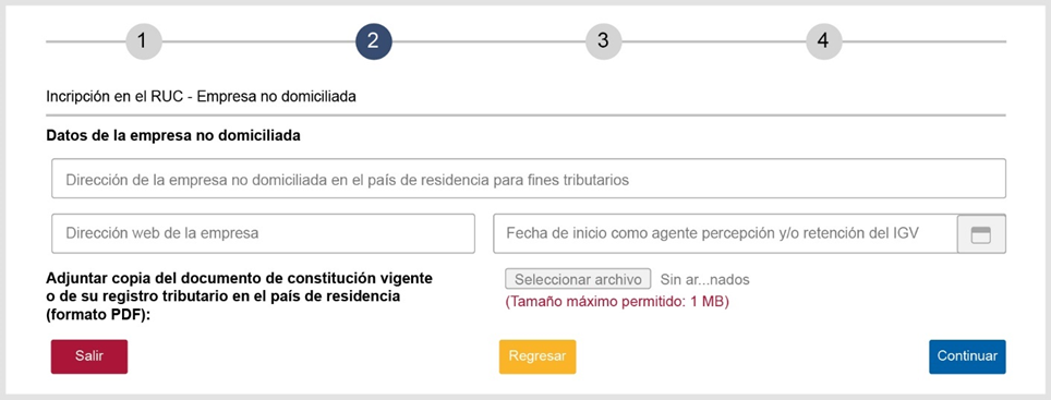 Los sujetos no domiciliados, al momento de solicitar su inscripción en el RUC, deben comunicar obligatoriamente, la siguiente información: