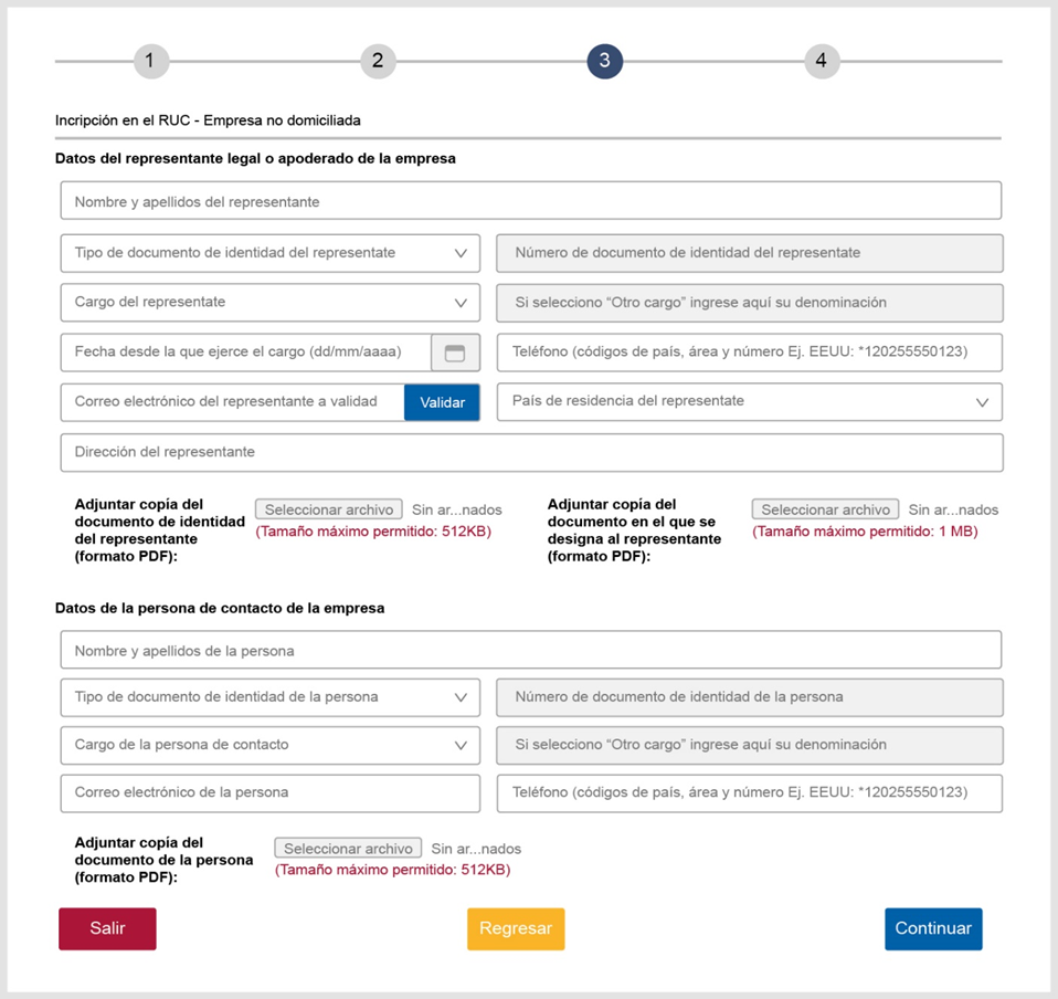 (*) Los representantes legales de los sujetos no domiciliados, de ser personas naturales, sus apoderados y la persona de contacto que estos declaren se identifican con el documento que acredite su identidad, según la normativa del país en que se emitan.