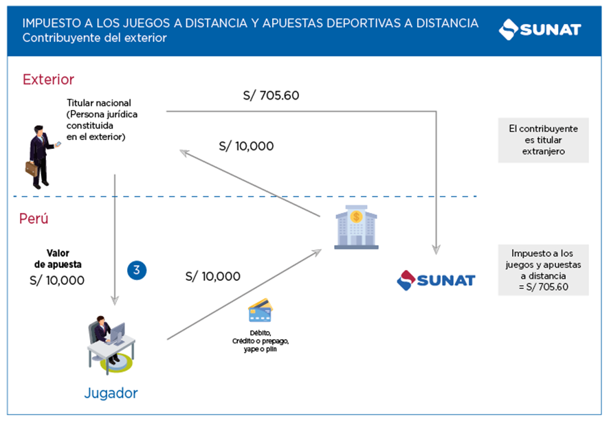 Para el año 2023, se publicó la Ley N.º 31806 que modifica a la Ley N.º 31557, la cual establece, entre otros aspectos, la incorporación de un nuevo contribuyente del impuesto a los juegos y apuestas deportivas a distancia a las personas jurídicas constituidas en el exterior.